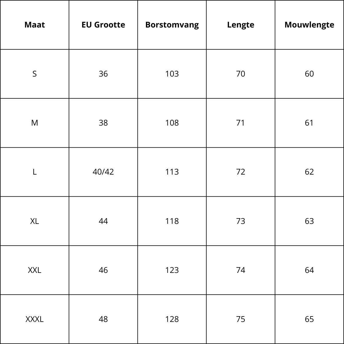 Size Chart (CM)