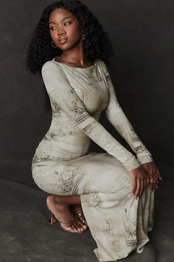 PRODUCT DETAILS: Maxi Dress Slight Stretch Material: Polyester, Spandex